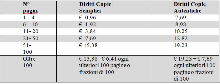 Diritti di copia su supporto diverso dal cartaceo (ove sia possibile contare il numero di pagine) vigenti alla data della firma del protocollo e validi fino ad ulteriori aggiornamenti