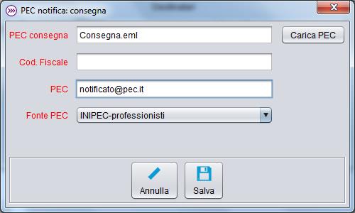 Anche l'indirizzo PEC del soggetto notificato può essere o meno automaticamente estratto dal redattore dal file daticert.xml contenuto all'interno del messaggio stesso e posposto all'utente.