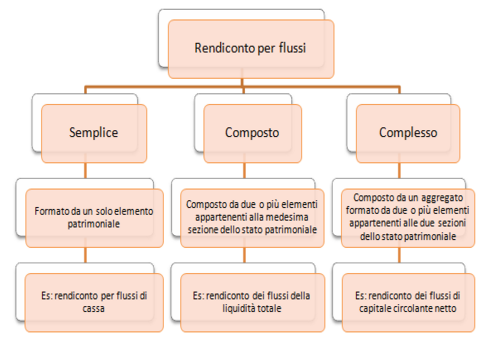 Si parlerà allora di rendiconto dei flussi semplice, quando esso riguarda un aggregato patrimoniale semplice, cioè, formato soltanto da un elemento patrimoniale; ne è un esempio il rendiconto dei flussi di cassa, il quale mette in evidenza, in modo analitico, gli andamenti della liquidità manifestatisi nell'esercizio considerato; (in altre parole, evidenzia le fonti e gli impieghi delle risorse monetarie).