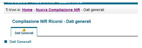 La prima scheda della NIR “Dati Generali” individuerà le successive schede, sottoponendole al depositante per la compilazione.