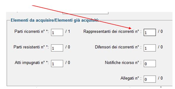 La compilazione di quest'area risulta rilevante per il proseguo poiché in base a quanto indicato il S.I.Gi.T. Proporrà le correlate schermate successive, in termini di tipo e quantità; in essa dobbiamo inserire le quantità presenti nel ricorso in riassunzione che andiamo a depositare relativamente a: I. “Parti ricorrenti”; II. “Rappresentanti dei ricorrenti”; III. “Parti resistenti”; IV. “Difensori dei ricorrenti”; V. “Atti impugnati”; VI. “Notifiche del ricorso”; VII. “Allegati”.