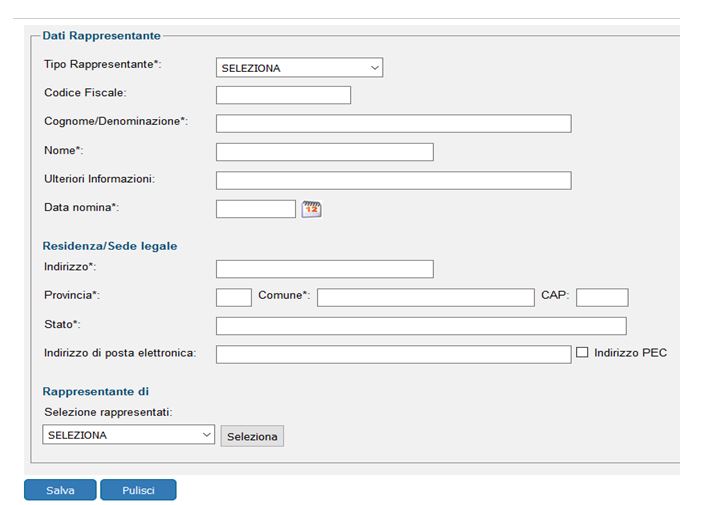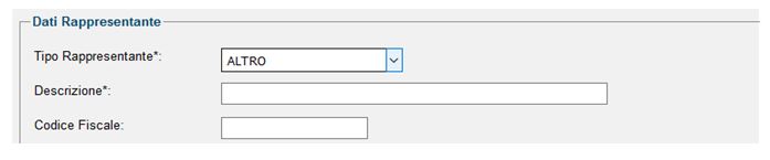 Ove vi trovaste a dover inserire una tipologia di rappresentante non censita tra quelle predefinite, oltre a scegliere nel box la voce “Altro”, occorrerà obbligatoriamente inserire nel box “Descrizione” una breve ma chiara definizione della nuova tipologia.