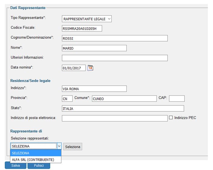 La terza schermata proposta dal sistema riguarda i “Rappresentanti” del ricorrente.