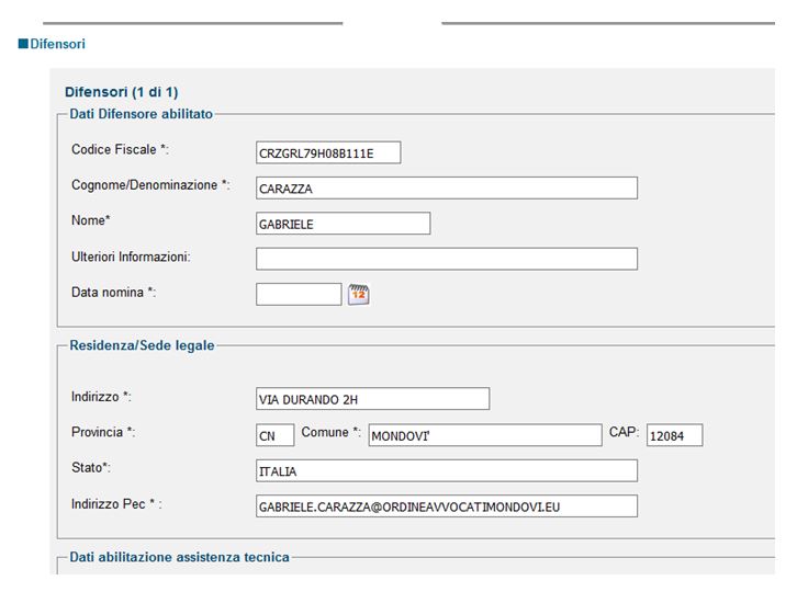 Per le rimanenti voci della scheda vale esattamente quanto descritto al punto precedente. 8. Scheda dati del difensore