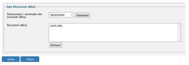 Per il funzionamento della compilazione e per le regole, vedere quanto descritto per il medesimo box dei rappresentanti dei ricorrenti. In seguito alla compilazione, cliccando sul pulsante “SALVA”, il sistema verificherà la regolarità dei dati inseriti ed individuerà eventuali errori, dandone tempestiva segnalazione in rosso in testa alla scheda e chiedendone la correzione prima di poter proseguire e inserire. 8.1. Inserimento ulteriori difensori