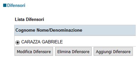 Se risulta inserito almeno un difensore, nella schermata di inserimento di quest'ultimo è presente una comoda funzionalità del sistema che consente di integrare ed aggiungere i dati senza dover necessariamente modificare la schermata dati generali. E anche possibile ritornare sulla voce “difensori” dopo aver completato l'inserimento per aggiungere (o rimuovere) un difensore. In questa maniera, il sistema andrà ad aggiornare in automatico la scheda dei dati generali, senza che si renda necessario un intervento manuale.