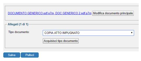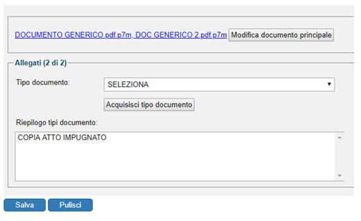 Terminata l'associazione del tipo documento, passeremo a caricare per ognuno di essi il file relativo, selezionando con un clic del mouse il tipo atto: