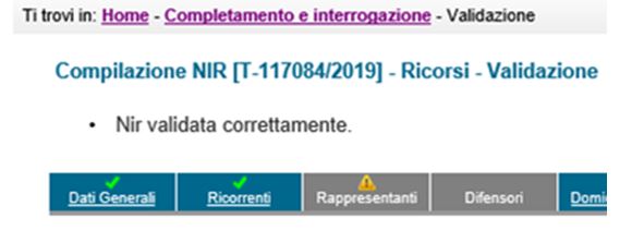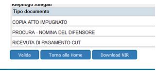 La schermata viene conclusa dai pulsanti “Valida”, “Torna alla home” e “Download NIR”.