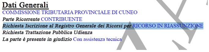 risultano già compilate e non sono modificabili; ciò deriva dal precedente inserimento nel quadro iniziale, da cui il sistema le ha tratte. A differenza di quanto accade con altra tipologia di procedimento, il ricorso in riassunzione presenta, alla voce “PARTE RICORRENTE” un campo modificabile: - parte ricorrente: Contribuente / Ente Impositore /Società di Riscossione Rimangono aperte le voci, con possibilità di apporre la spunta laddove ricorra la relativa circostanza per valorizzarla in positivo: