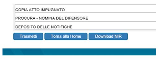 Quello di download consente di scaricare, come già visto in precedenza, una copia di riepilogo della NIR Validata, mentre se vogliamo procedere al deposito basterà cliccare sul pulsante “Trasmetti” ed, oltre ad apparire a video la ricevuta di avvenuta trasmissione, completa di numero identificativo, la stessa verrà immediatamente inviata nella casella di PEC che abbiamo indicato in fase di compilazione.