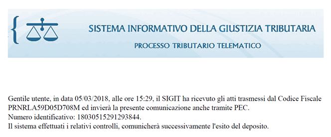 Trascorso il tempo occorrente al S.I.Gi.T. per i controlli successivi all'invio, il deposito si perfezionerà e riceveremo nella stessa casella di PEC anzidetta il numero di registro dei ricorsi RGR assegnato al fascicolo. Tale informazione potrà anche essere consultata dalla home page del S.I.Gi.T., dopo l'autenticazione, accedendo al link “Completamento e interrogazione”,