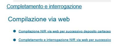 Il sistema offre anche il servizio della compilazione N.I.R. via web, ma finalizzata ad un successivo deposito cartaceo. Si tratta di una funzionalità utile, anche per familiarizzare con lo strumento web, considerata la sua obbligatorietà introdotta dal d.l. n. 119/2018 a partire dal 1° luglio 2019.